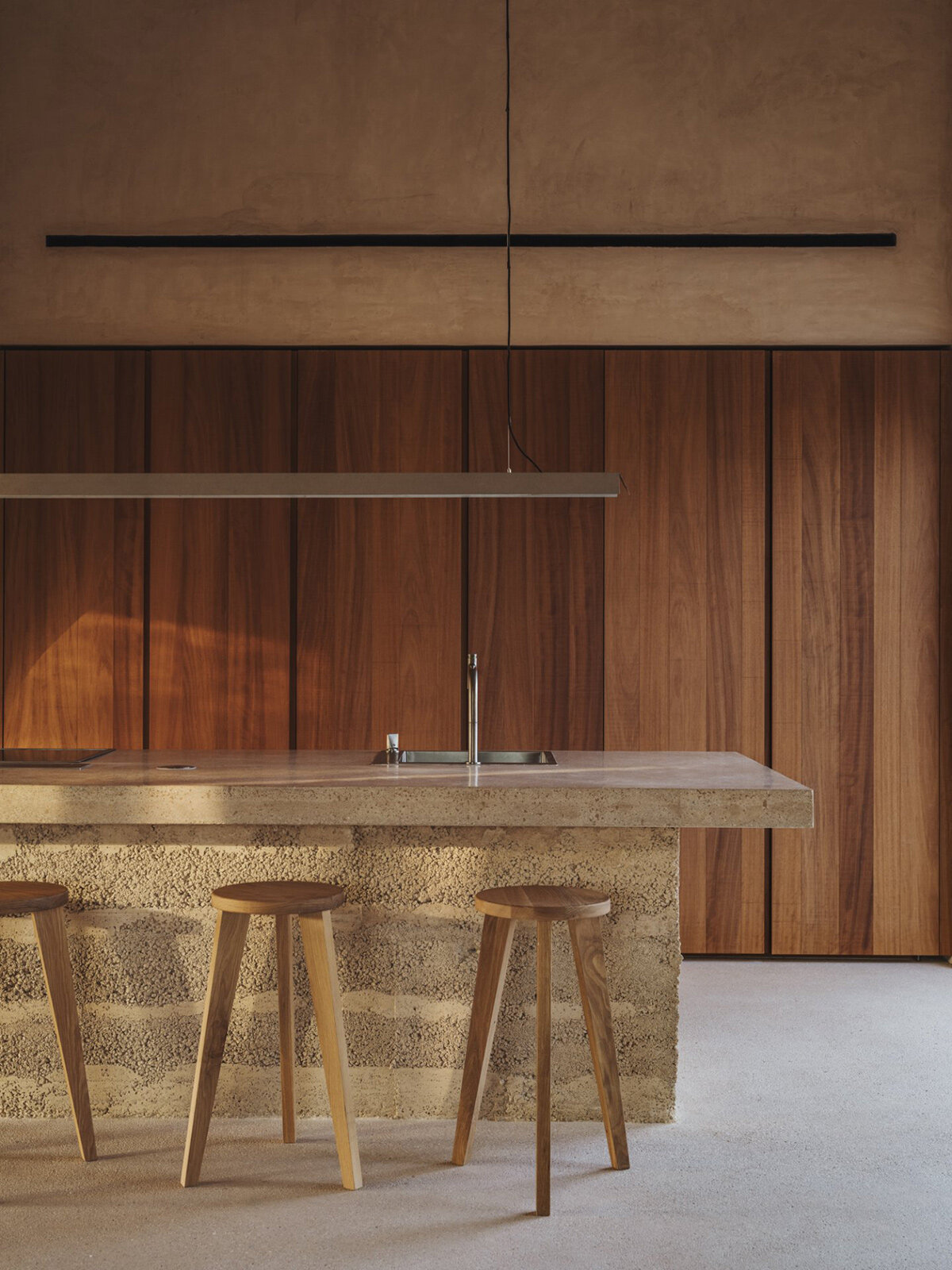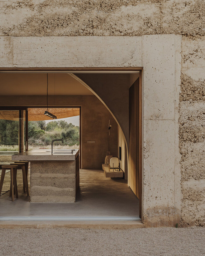 Architecture studio Munarq’s latest residential project, Ca na Pau, is located in the rural landscape of Binissalem, Mallorca. This contemporary house, built from earth, draws inspiration from traditional Mallorcan construction methods while embracing modern sustainability principles. Through the careful selection of materials and the integration of natural elements, Ca na Pau reflects a harmonious balance between architecture and its surrounding environment.