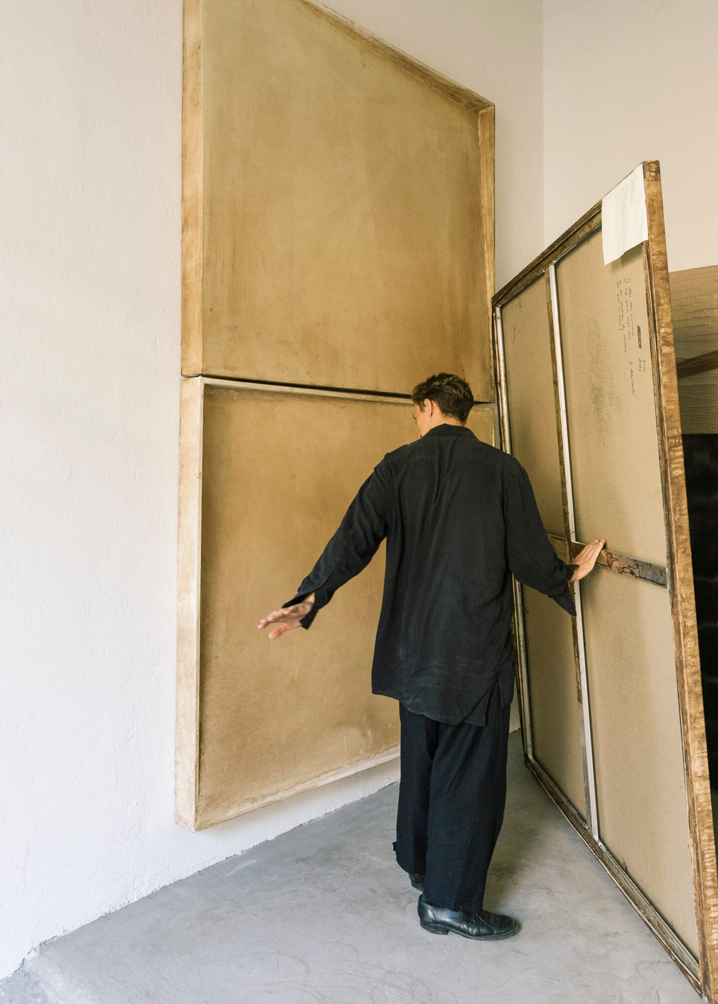 Cloudbursts of sienna bloom across large-format canvases, effusive in their warmth. With time, an apparition appears to hover through. Below the surface of Leonardo Anker Vandal’s Adagio paintings, a disquiet gathers force, drawing the viewer into the fluid mirror of minimal abstraction. In the work and world of the self-taught Danish artist, beauty and sorrow are intimately entangled. Embedded in the existential preoccupations of his 18th-century Romantic muses – Keats, Yates, Mahler – his work is forged through the “excavation of memories;” a personal therapeutic process with widespread resonance. From his studio in Brescia, Italy, accompanied by his beloved Border Collie, Nemorino, Anker Vandal speaks with radical openness about the arc of his autodidacticism, existence outside the art establishment, and the figurative trail of breadcrumbs he hopes to leave for those who need it most.